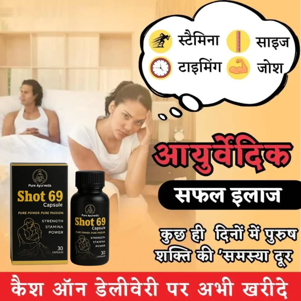 Shot 69 Capsules से लिंग में रॉड जैसी सख्ती मिलने लगती है जो घंटो तक बनी रहती है। सेक्स टाइमिंग और स्टैमिना में जोरदार बढोत्तरी होती है जिससे कोई भी पुरुष नॉनस्टॉप सेक्स प्रदर्शन कर सकता है।)