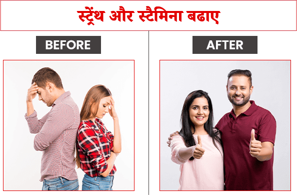 स्ट्रेंथ और स्टैमिना बढ़ाकर कमजोर पुरुष को भी जोशीला बनाता है जिससे वो बिना थके लम्बे समय तक जोरदार प्रदर्शन कर पाता है।